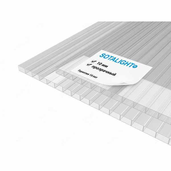 Сотовый поликарбонат 10 мм SOTALIGHT прозрачный 2100х12000 мм