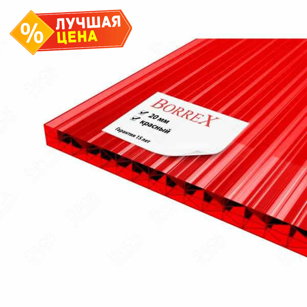 Сотовый поликарбонат 20 мм BORREX красный 2100х6000 мм