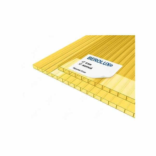 Сотовый поликарбонат 6 мм BEROLUX желтый 2100х6000 мм