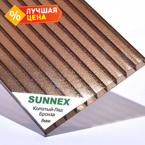 Сотовый поликарбонат 8 мм SUNNEX колотый лед бронза 2100х12000 мм