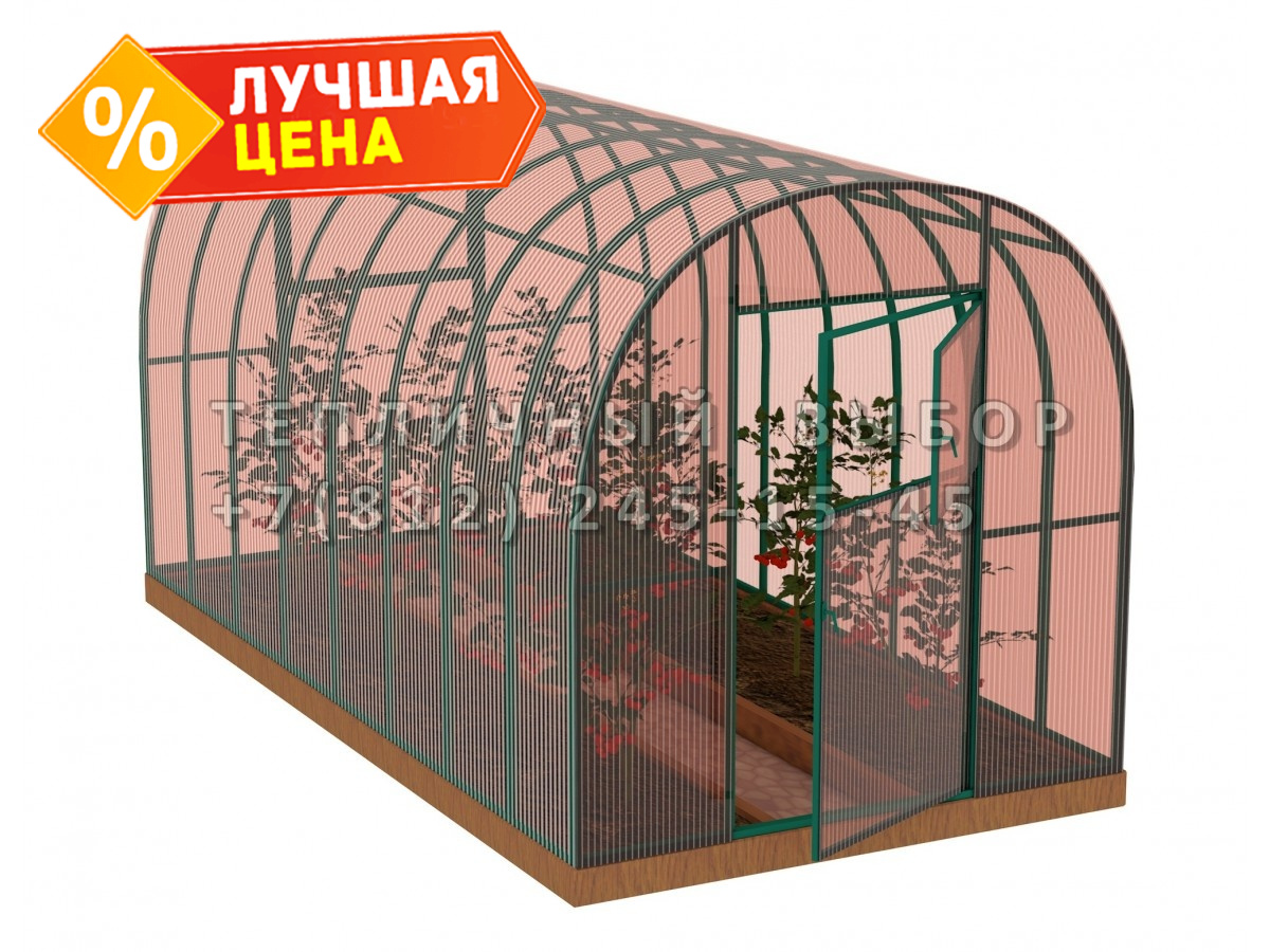 Теплица из поликарбоната-фито Усиленная Арочная 2,1х4 h=2 м профиль 25х25 мм Зеленый