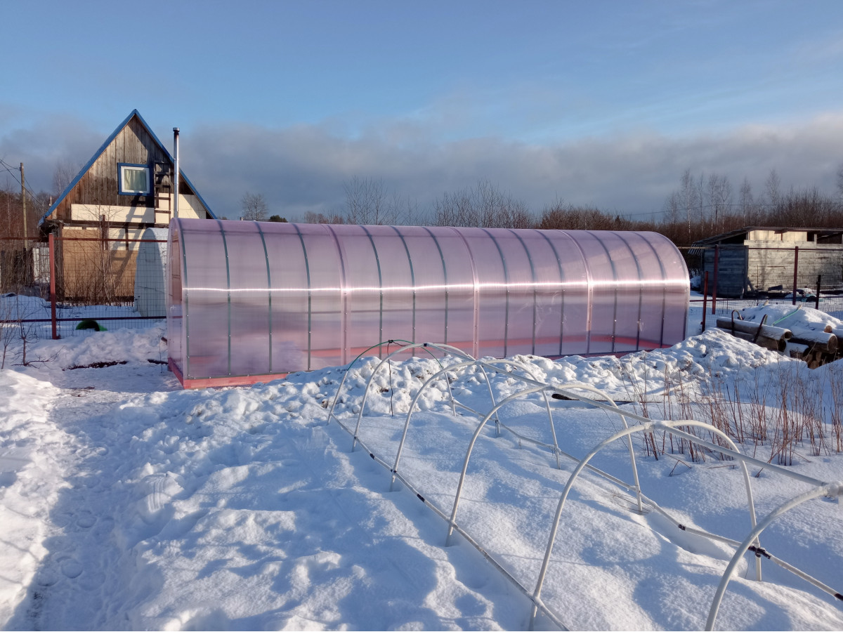 • узкая арочная конструкция с крутым скатом препятствует скоплению снега в зимний период