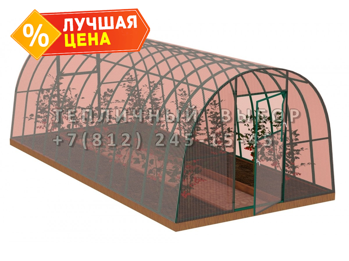 Теплица из поликарбоната-фито Усиленная Арочная 3х12 h=2.1 м профиль 30х30 мм Зеленый