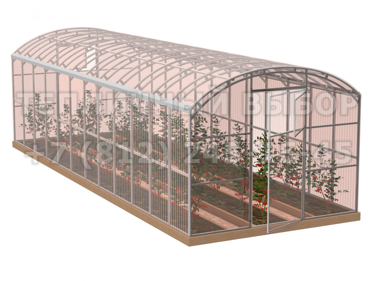 Теплица из поликарбоната-фито Усиленная Прямостенная 2,5х12 h=2.1 м профиль 20х40 мм