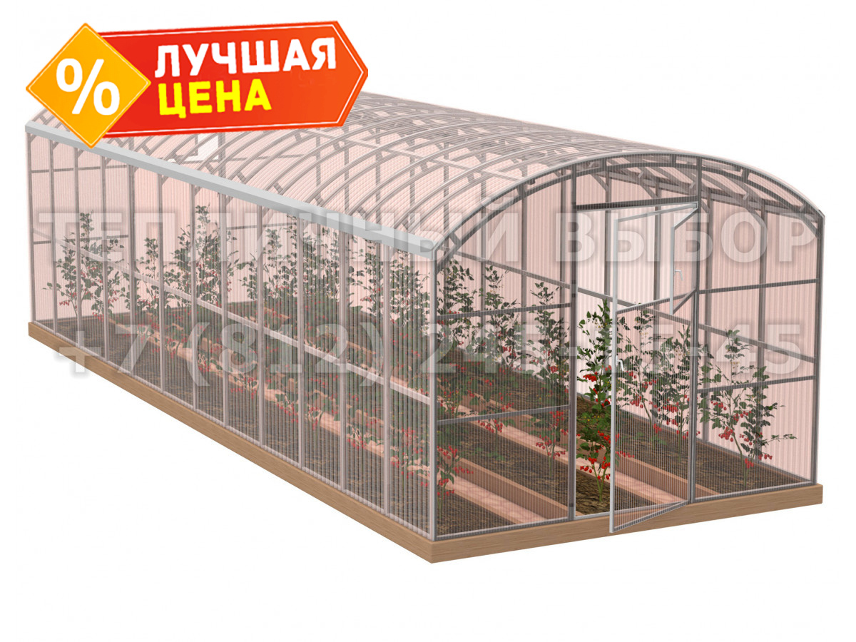Теплица из поликарбоната-фито Усиленная Прямостенная 2,5х8 h=2.1 м профиль 20х40 мм