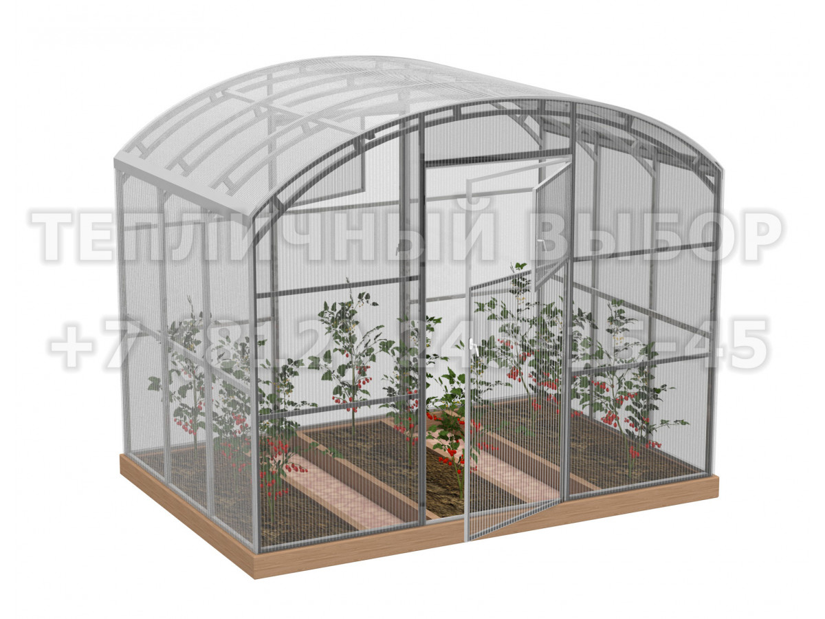 • теплица рекомендована для северных широт с большим количеством осадков, выдерживает порывистые ветра и сильные снегопады, не деформируется под слоем слежавшегося снега толщиной до 90 см;